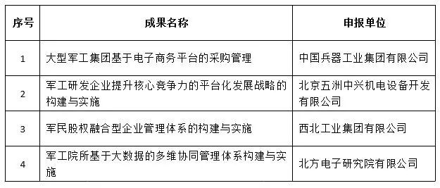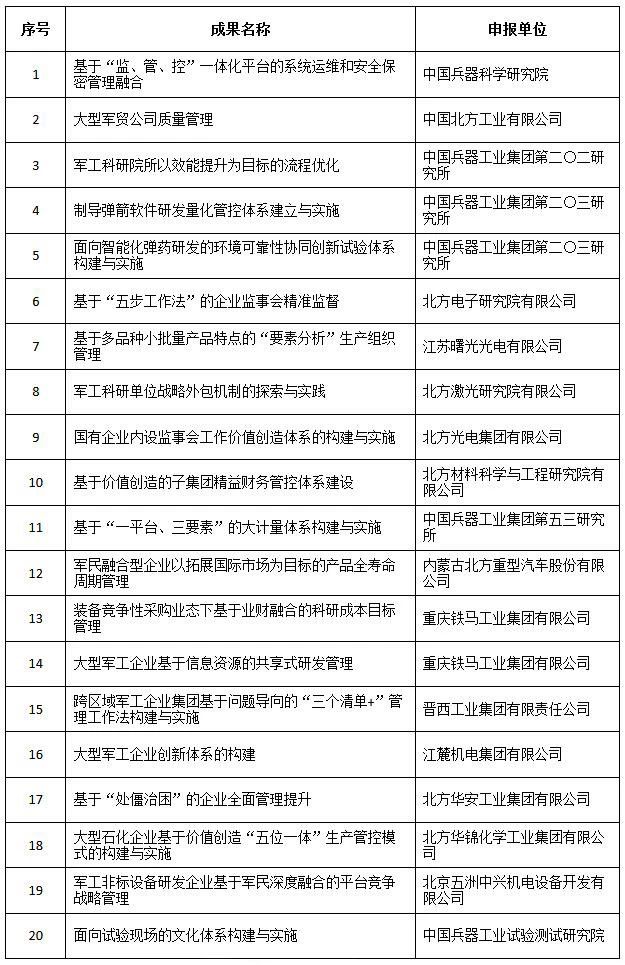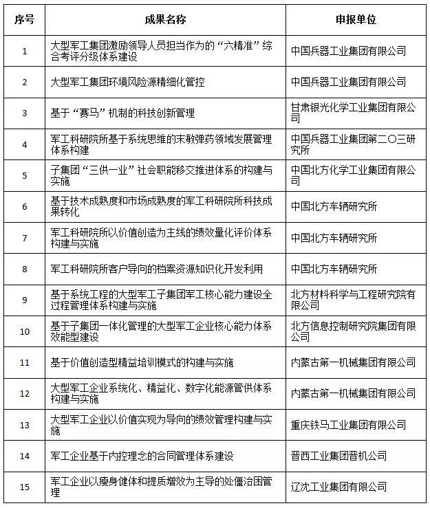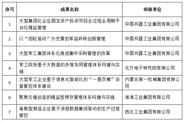經全國企業管理現代化創新成果審定委員會終審,第二十五屆全國企業管理現代化創新成果公布,中國兵器工業集團4項創新成果榮獲二等獎。