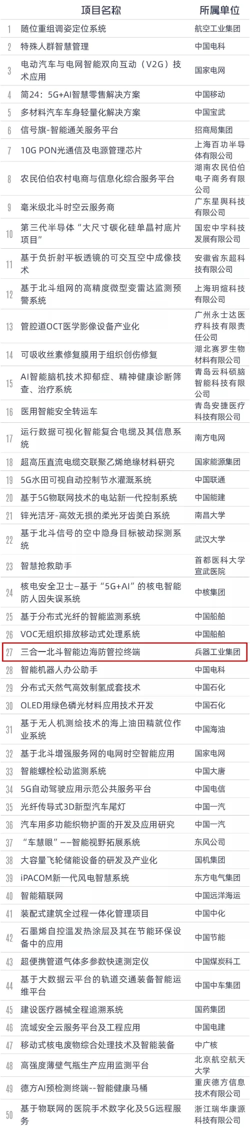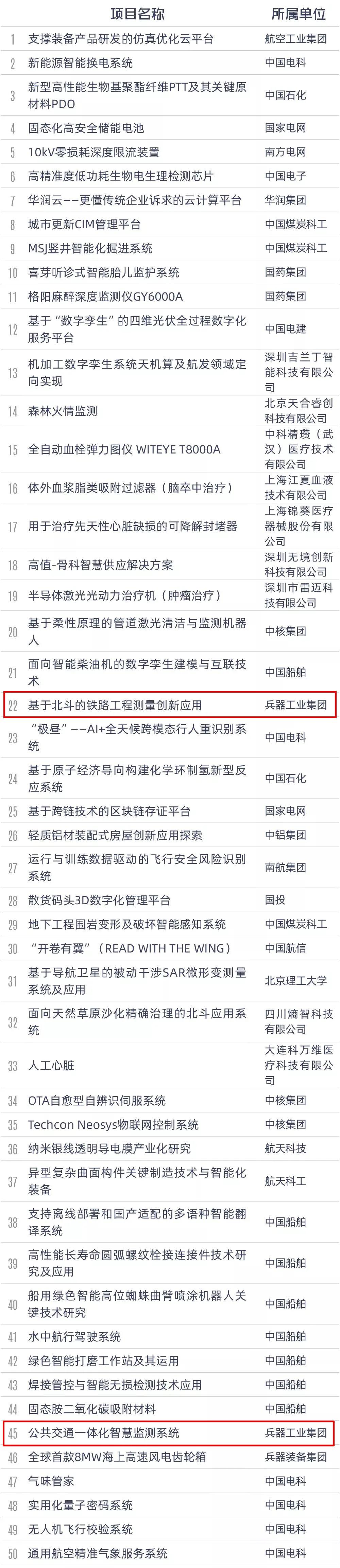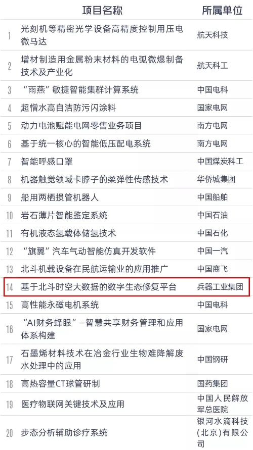 兵器工業(yè)集團(tuán)獲獎項(xiàng)目