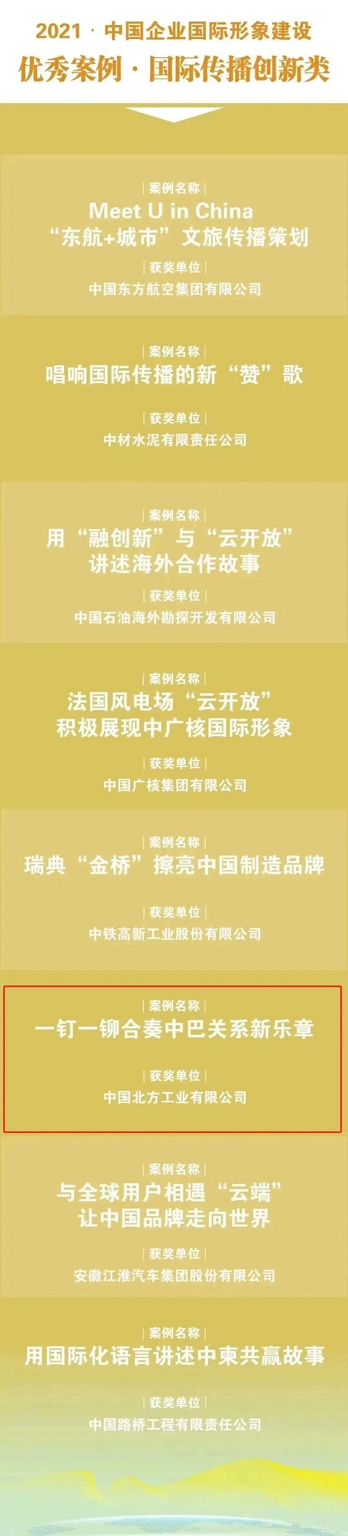 北方公司海外項目案例入選2021·中國企業國際形象建設“國際傳播創新類”優秀案例