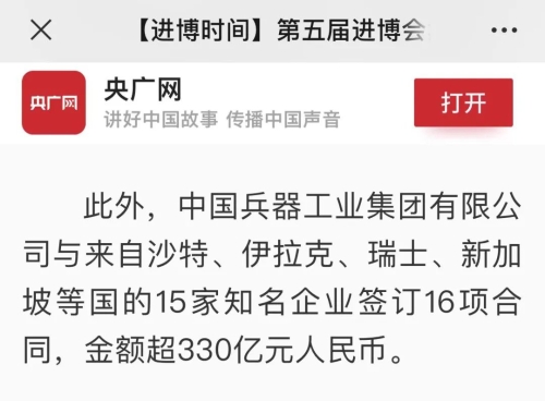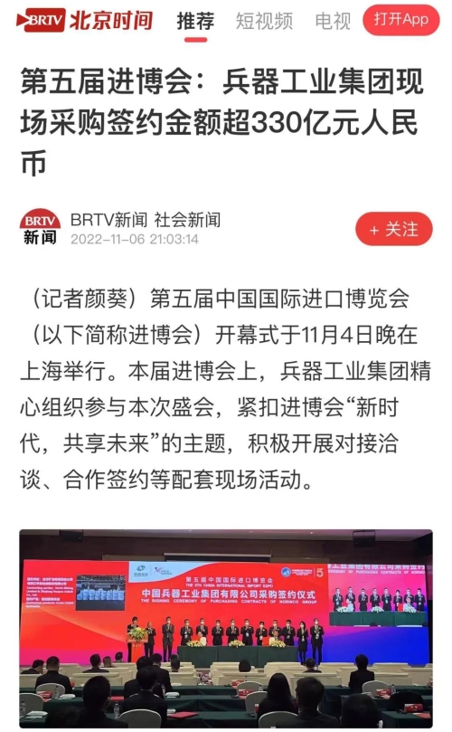 兵器工業集團第五屆進博會成果受到廣泛關注