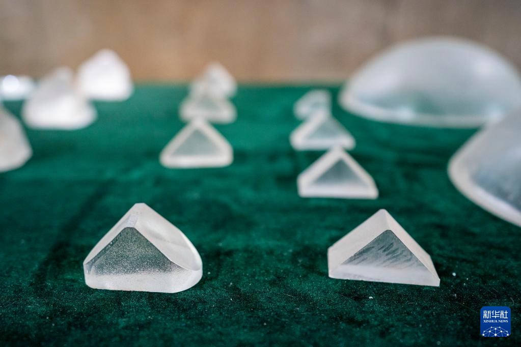 這是5月16日拍攝的中國光學歷史博物館內展出的玻璃元件。