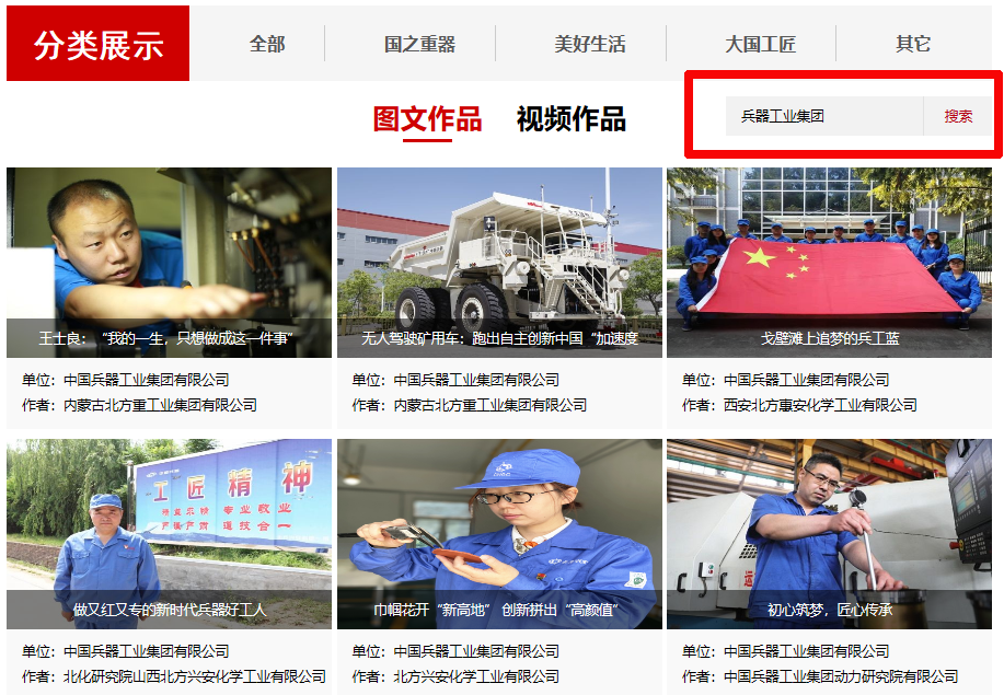 在搜索欄輸入“兵器工業集團”