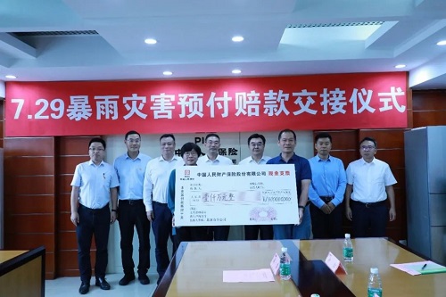 8月8日,集團公司與人保財險公司舉行北京7.29暴雨災害預付賠款交接儀式,人保財險公司提前向北方智能微機電集團有限公司預付賠款1000萬元。8月9日,集團公司在涿州召開保險工作協調推進會,8月10日和11日,人保財險公司確定近期將分別向河北亞大汽車塑料制品有限公司和闊丹凌云汽車膠管有限公司預付賠款1000萬元。