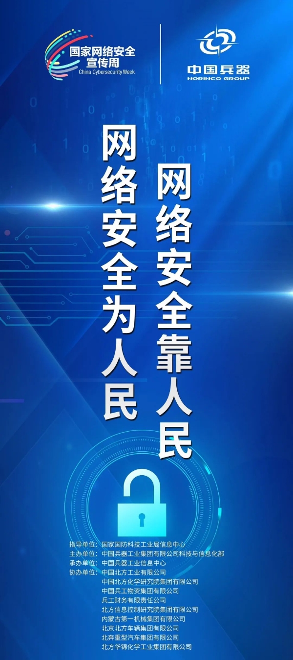 9月11日至17日,中國兵器工業集團有限公司以“數字創新 智御未來”為主題,圍繞集團公司“1+5”戰略和“雙十”規劃,組織開展集團公司網絡安全宣傳周系列活動。